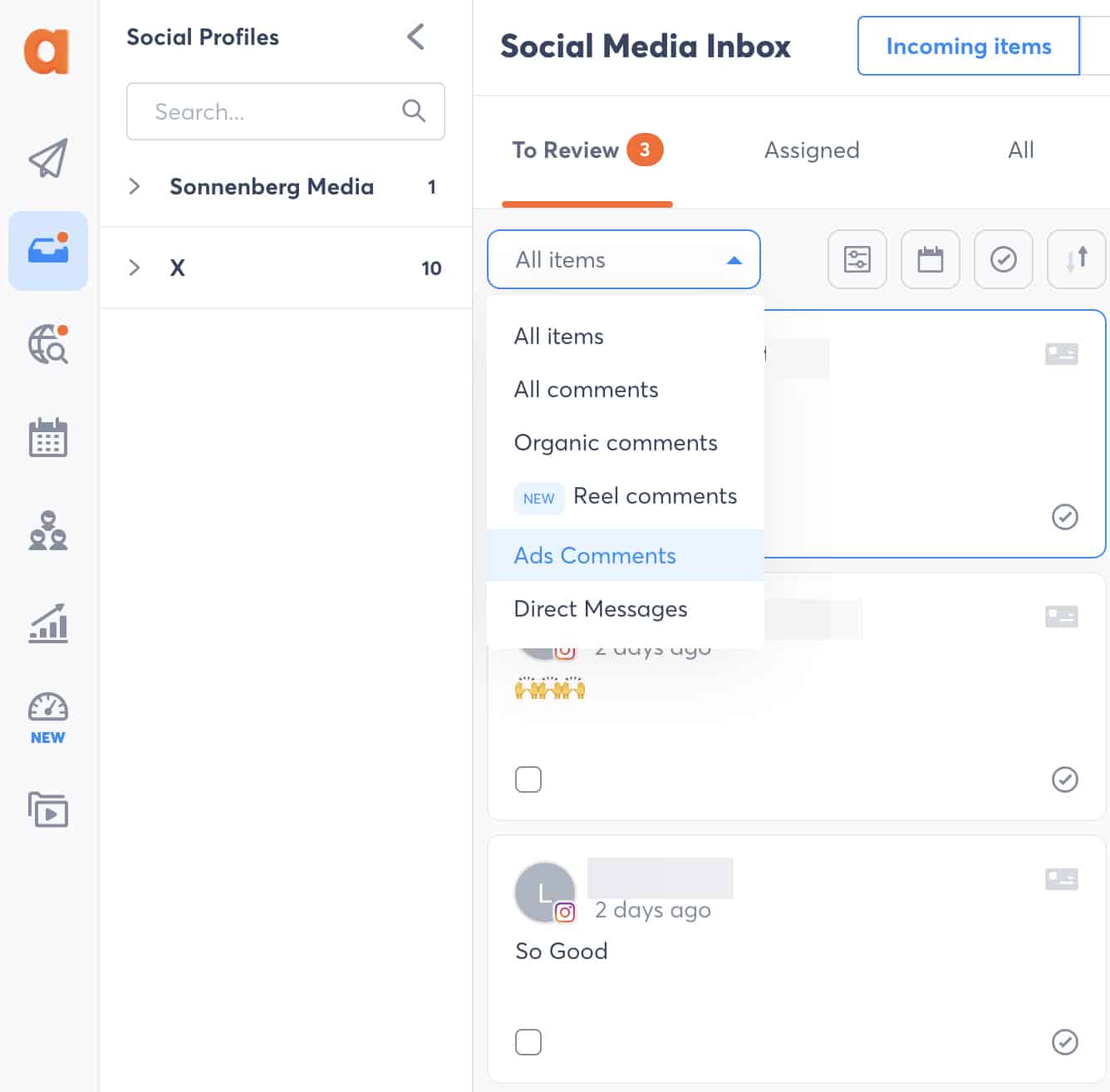 Agorapulse は広告キャンペーンの作成をサポートしていませんが、広告関連のエンゲージメントの管理には役立ちます。 Agorapulse の受信トレイをフィルタリングして広告コメントを強調表示し、効率的に確認して応答できるようにすることができます。