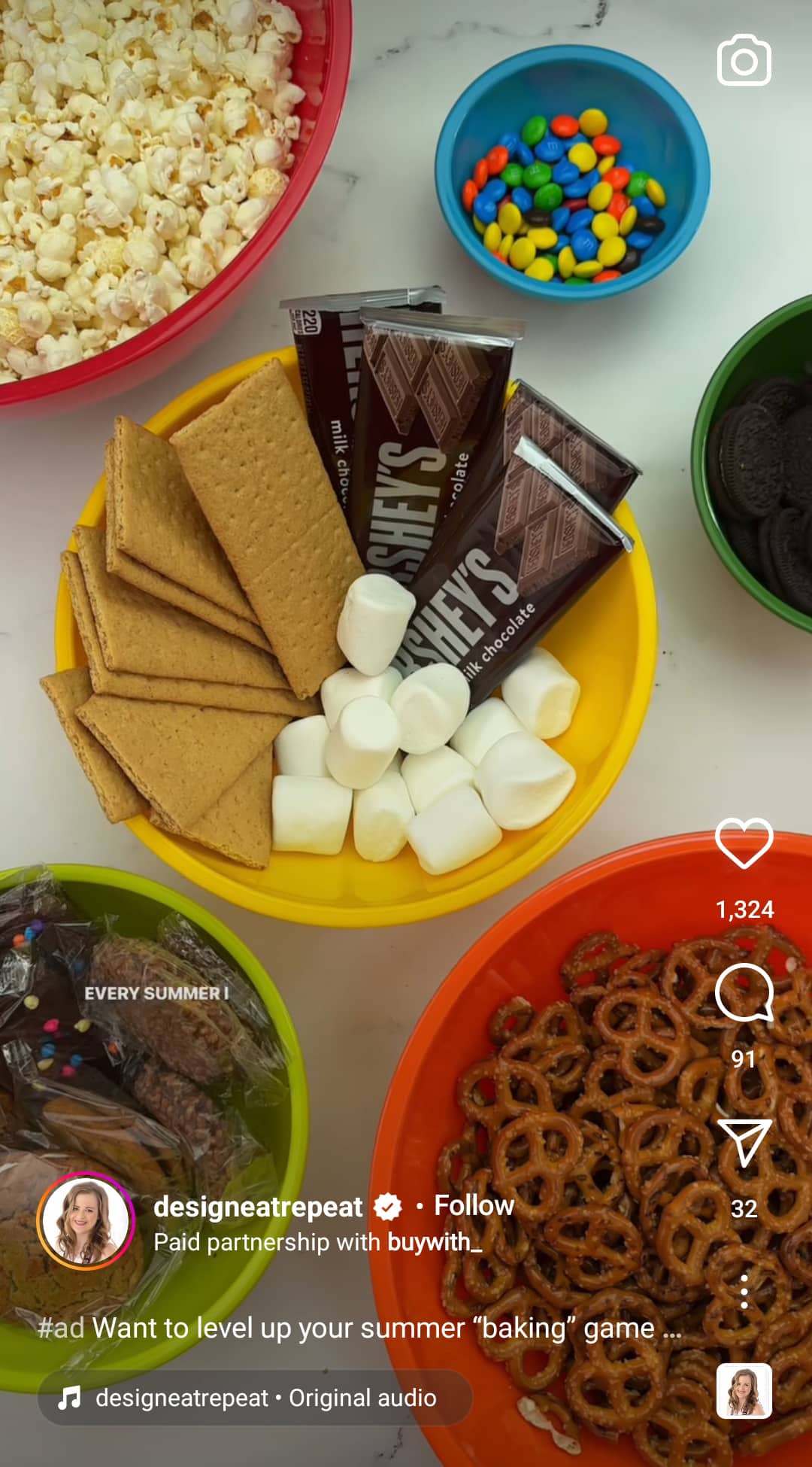 上の @designeatrepeat リールには、ライフストリーム プラットフォームのサービスを強調するために @buywith_ との有料パートナーシップが含まれています。 上記の投稿はオーガニックなものですが、Instagram のパートナーシップ ツールは広告でも機能します。 このオプションを使用すると、企業は独自の広告キャンペーンで事前承認されたユーザー生成コンテンツ (UGC) を宣伝できます。