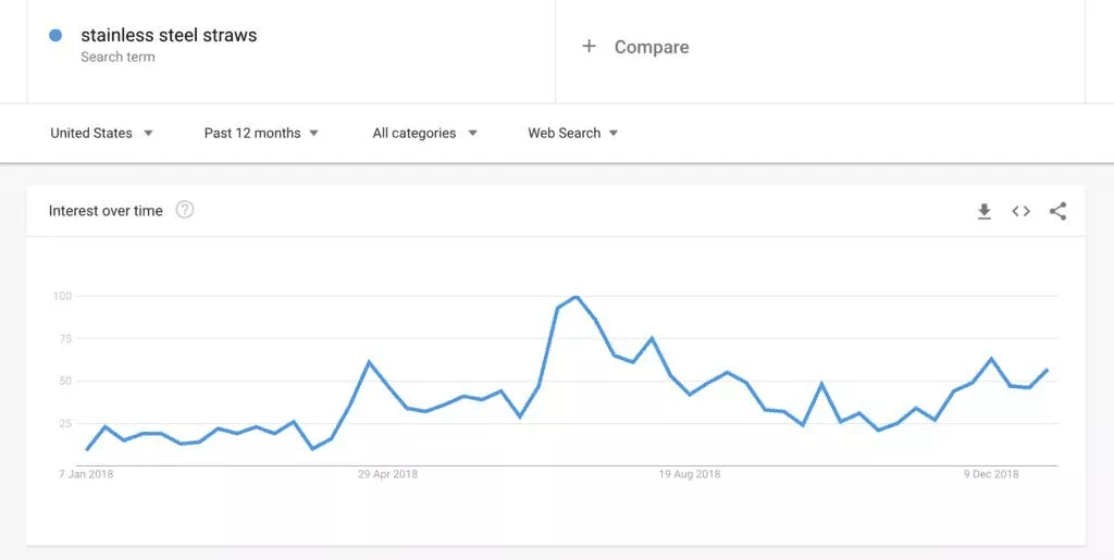 Googleトレンドは、特定の用語を探している人の数に関する情報を提供するため、ドロップシッピング製品のアイデアを検証するための素晴らしいツールです。 基本的に、それはあなたに製品がどれほど人気があるかについての考えを与えます。
