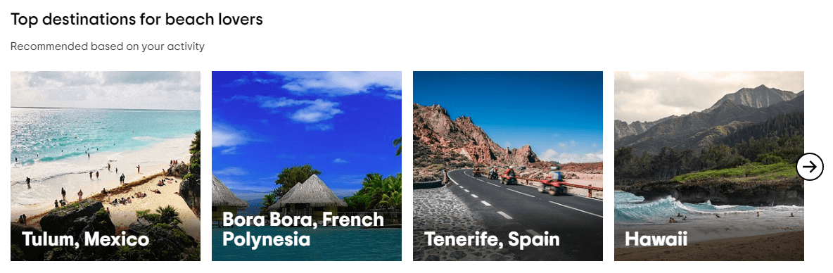 コンバージョンを促進するための Web サイトのパーソナライゼーションのベスト プラクティスの 1 つは、以前の行動や購入に基づいて推奨事項を提供することです。 たとえば、Amazon の Web サイトにアクセスすると、最初に表示されるのは、過去の購入に基づく製品の推奨事項です。