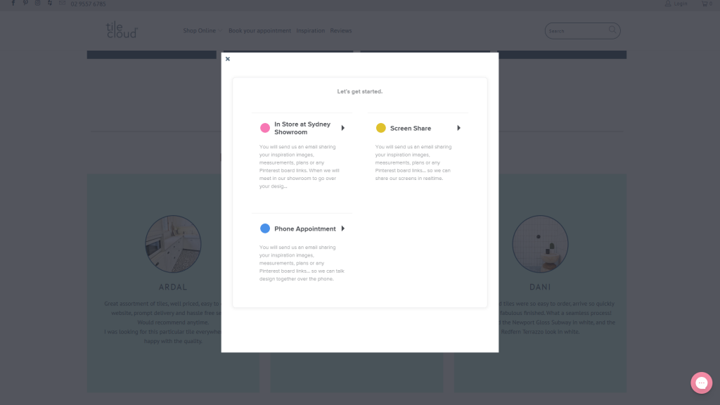 この特定のポップアップデザインは、これまでに遭遇した中で最もクリエイティブなものの1つです。 これはTileCloudと呼ばれるオンラインショップからのもので、無料の設計相談も提供しています。