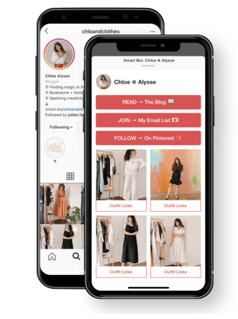 複数のリンクや製品がある場合、Smart Bioを使用すると、ブランドの色や写真を使用してランディングページを作成でき、二度と変更する必要はありません。