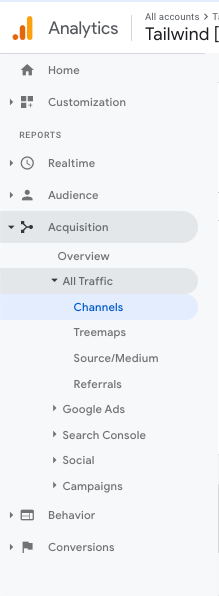 GoogleAnalyticsを使用して調べます。 全体像を確認するには、[集客]→[すべてのトラフィック]→[チャネル]に移動します。