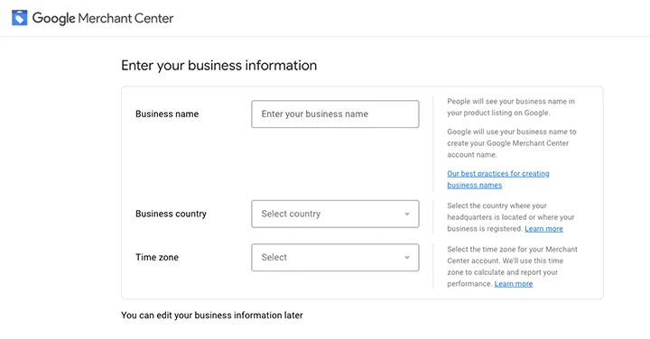 ステップ1:Google MerchantCenterアカウントを作成する