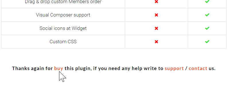 「GSTeamMember」の無料バージョンと製品のドキュメントページの下部(およびメインページの「Freevs Pro」タブの下)にあるProバージョンとの機能比較は、やや不一致で終わります。次のCTAフレーズが表示された場合は注意してください。