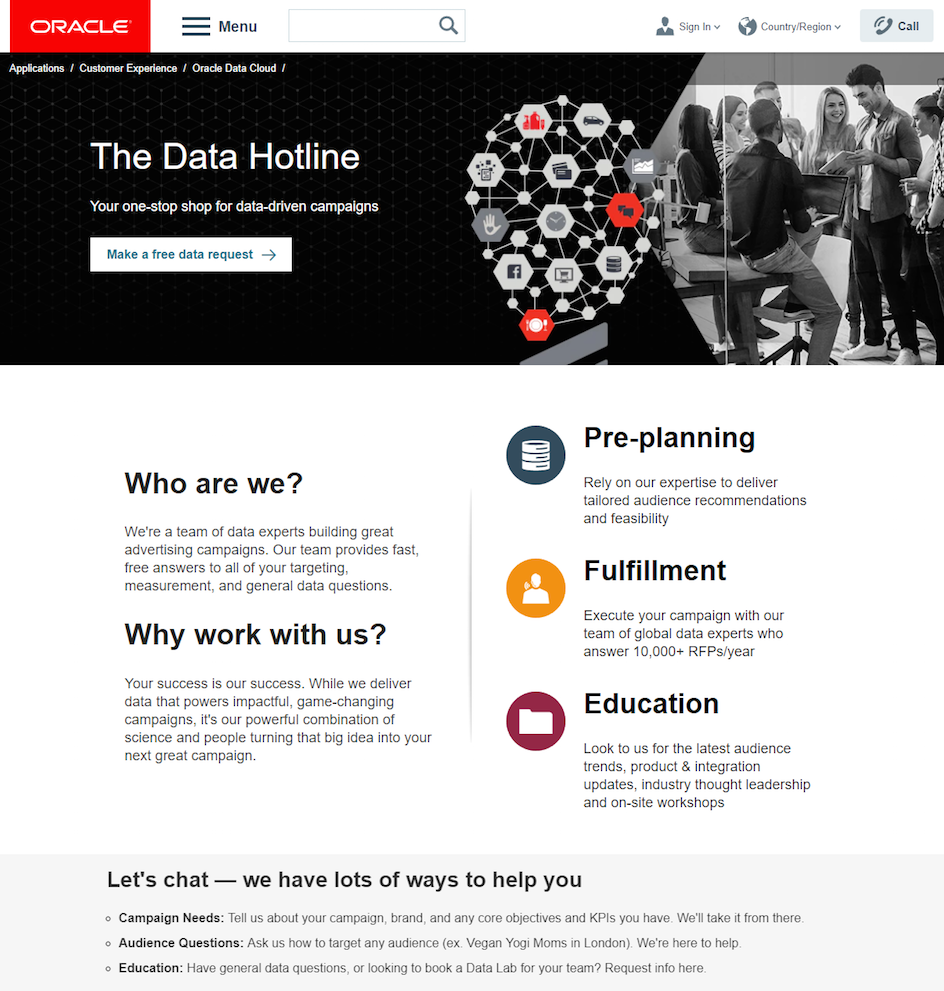 아래의 광고와 클릭 후 방문 페이지는 모두 이 캠페인이 데이터 기반 캠페인 개선을 목표로 하는 마케팅 팀을 대상으로 한다는 것을 분명히 합니다.