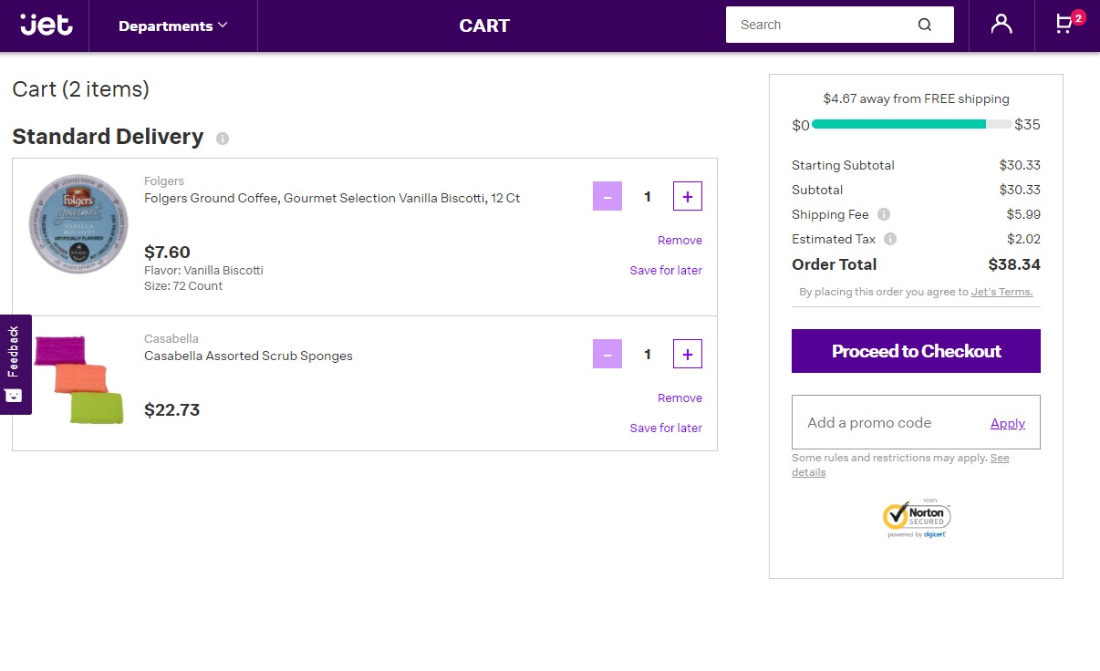 다시 말하지만, Jet.com은 Amazon과 유사한 체크아웃 디자인을 사용합니다.