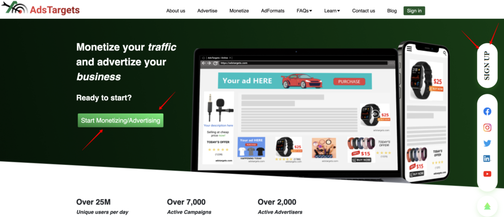 AdsTargets는 Google 광고, Instagram 및 Facebook 광고와 같은 대형 광고 네트워크에 비해 기업을 위한 매우 저렴한 온라인 광고 플랫폼입니다.