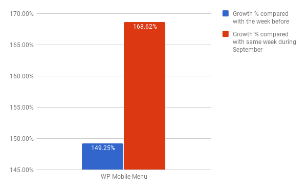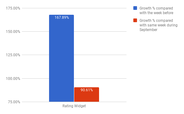 분명히 별표 평가 플러그인은 ** 활성 무료 사용자 목록에 그들이 진행하고 있는 특별 블랙 프라이데이 세일에 대해 이메일로 보내는 것 외에는 아무것도 하지 않았지만, 같은 날짜의 실적과 비교할 때 BFCM 주 동안 수익이 거의 두 배가 되었습니다. 작년 9월쯤. 이 경우 예상대로 BFCM 이전 주와 비교할 때 훨씬 더 큰 성장률을 볼 수 있습니다. 이는 일반적으로 더 낮은 수익 흐름을 나타내는 경향이 있습니다.