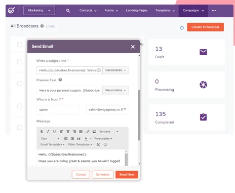 EngageBay는 이메일에 연락처 속성을 추가하여 이메일을 개인화할 수 있도록 도와줍니다.