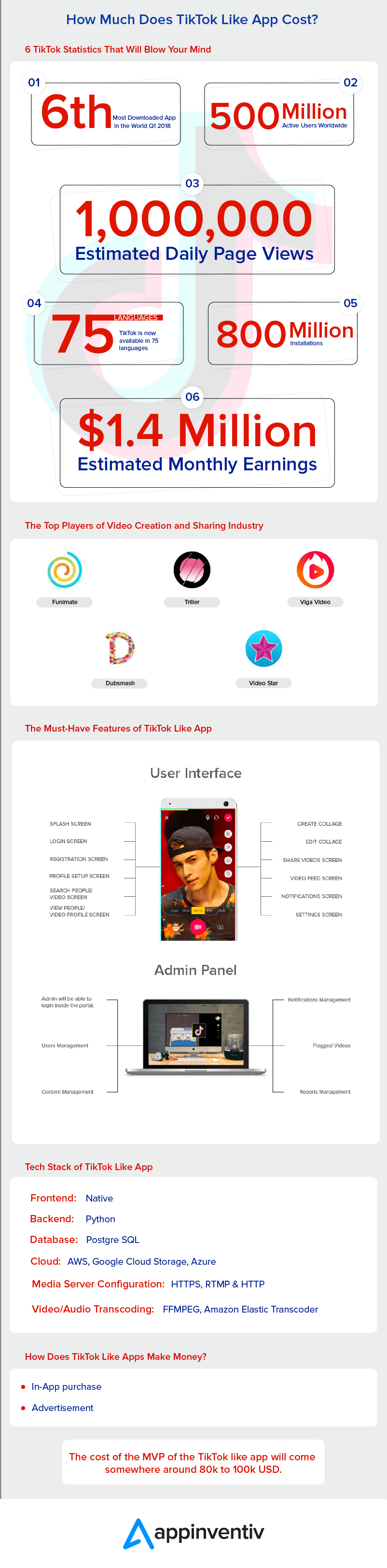 앱 개발과 같은 TikTok의 비용은 얼마입니까?