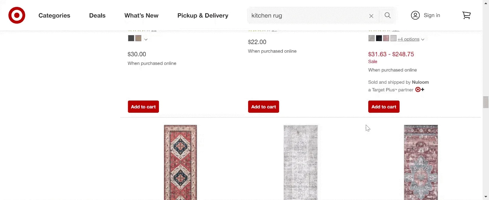 방문자의 검색과 관련된 최고의 선택 또는 전문가 추천 제품을 특징으로 하는 캐러셀, 배너 또는 추천 타일을 보여주는 변형을 만듭니다. 이것을 컨트롤과 비교하고 성능을 관찰하십시오. 브랜드 거래 증가에 도움이 된다면 즉시 변경 사항을 구현하세요. 내가 주방 러그를 검색할 때 Target이 유기적 검색 결과에 수백 개의 제품과 함께 추천 제품 타일을 어떻게 표시했는지 살펴보세요.