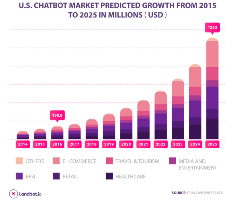 이러한 추세는 올해에도 우리를 동반할 예정입니다. Gartner는 2030년까지 10억 건의 요청이 챗봇에 의해 자동으로 수집될 것이며 챗봇 시장은 미국에서만 2025년까지 10억 달러를 초과할 것으로 추정됩니다.