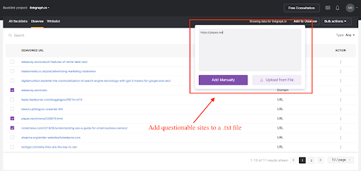 링크 거부를 시작하기 전에 백링크 프로필을 철저히 감사해야 합니다. 이는 다양한 백링크 분석기 도구를 사용하여 수행할 수 있으며 대부분 동일한 방식으로 작동합니다. 간단히 백링크 목록을 다운로드하고 품질이 낮거나 스팸으로 보이는 것을 표시하십시오.