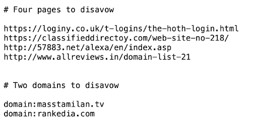 - 링크 중심 알고리즘 업데이트: 링크 스팸에 초점을 맞춘 알고리즘 업데이트 후 키워드 순위 또는 유기적 트래픽이 급격히 하락하는 경우 Google에서 여전히 부정적인 링크를 계산하고 있을 가능성이 큽니다. 순위 하락이 충분히 심각한 경우 거부 파일이 손상을 복구하는 데 도움이 될 수 있습니다.