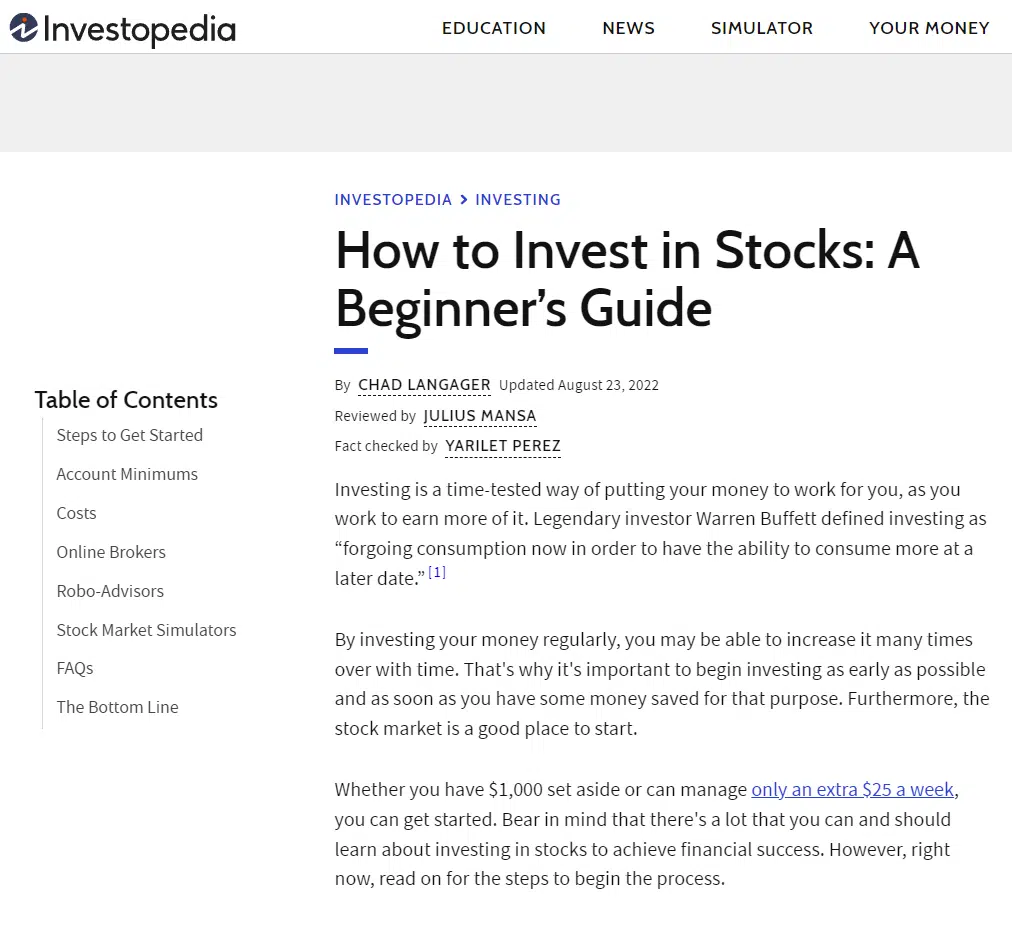 Investopedia의 주식 투자 초보자 가이드와 같은 주제에 대한 기본 지식은 상록수 콘텐츠의 주요 부동산입니다.