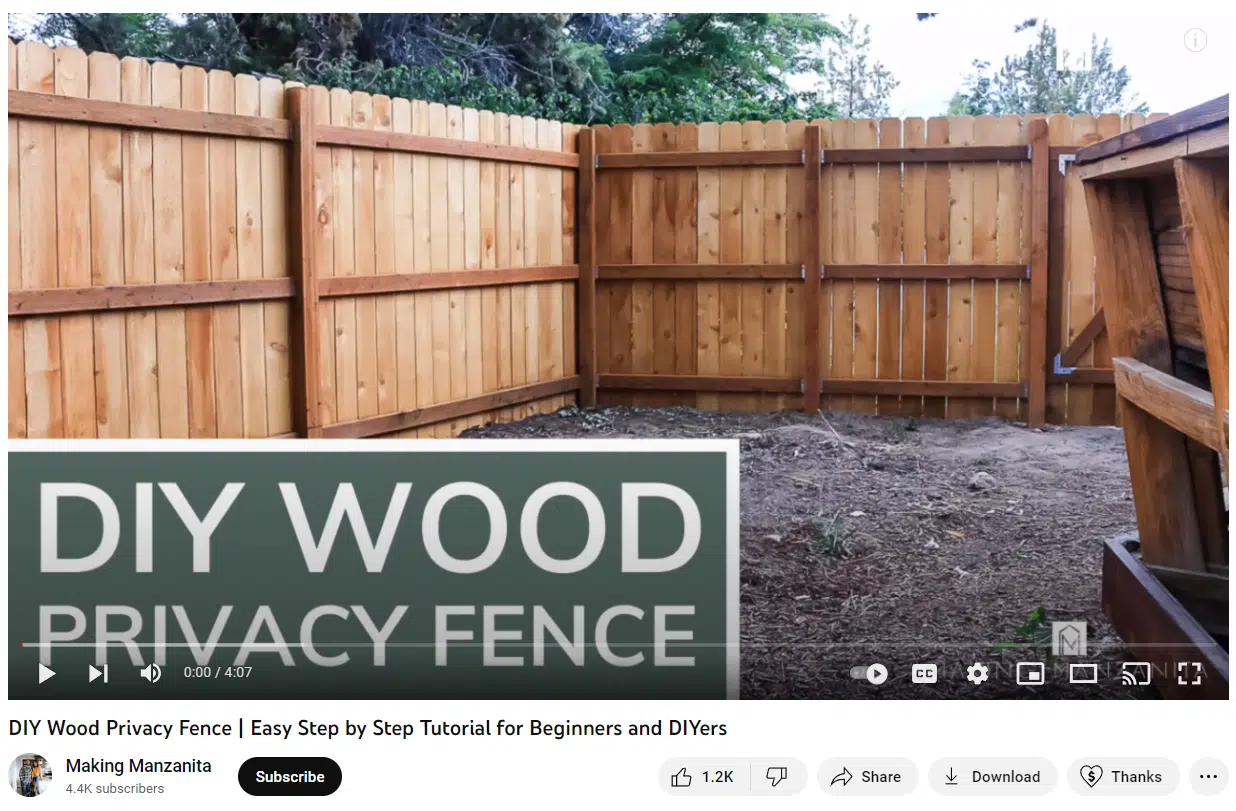나무 뒤뜰 울타리를 만드는 방법에 대한 이 자습서는 상록수 비디오 콘텐츠의 좋은 예입니다.