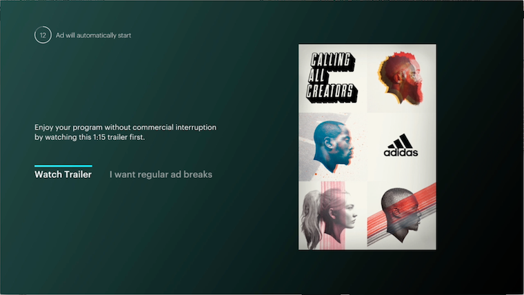 브랜드 슬레이트 광고 는 쇼가 시작되기 전에 표시됩니다. 일반적으로 이것은 7초 길이의 로고 클립으로 "다음 프로그램은 [귀하의 브랜드]에 의해 제한된 상업적 중단으로 귀하에게 제공됩니다."라는 텍스트가 포함됩니다.