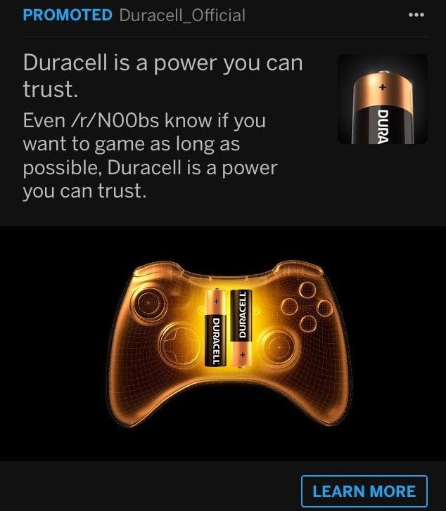 Duracell + Display Post + 게이머 용어 = 환상적인 Reddit 광고.