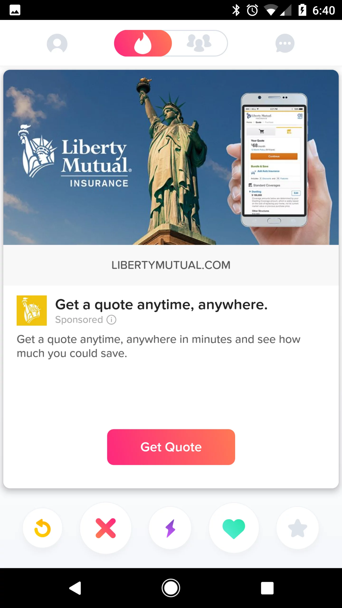 Google에서는 앱의 무료 기본 요금제를 통해 사용자에게 표시되는 Tinder에서 디스플레이 광고를 실행할 수 있습니다.