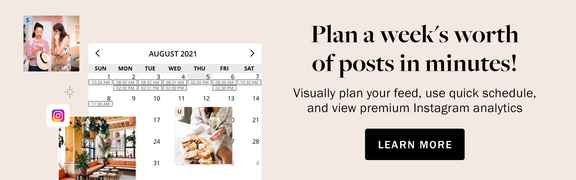 PLANOLY 전문가 팁: PLANOLY의 분석 기능을 사용해 수동 계산을 피하십시오. 향후 게시물에 적용할 수 있는 프리미엄 Instagram 분석을 받으세요.