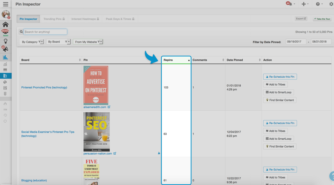 참고: 청중이 무엇을 원하는지 파악하는 가장 좋은 방법은 Tailwind의 Pin Inspector와 Pinterest 분석을 살펴보는 것입니다. 청중이 어떤 핀을 매력적으로 생각하는지 확인하십시오(클릭 및 저장 보기를 통해). 해당 콘텐츠가 귀하의 사이트에 있든 없든, 더 좋아하게 만들 수 있습니까? 아, 그리고 Pin Inspector에 있는 동안 가장 인기 있는 핀이 다시 나오도록 예약할 수 있습니다! Pinterest용 Tailwind 무료 평가판을 받으세요.