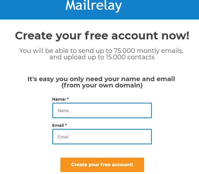 1) Mailrelay에 등록하려면 이름과 이메일 주소만 있으면 됩니다.