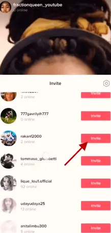 – 라이브 스트림에 참여하려는 TikTok 사용자의 사용자 이름 옆에 있는 " 초대 " 버튼을 누릅니다. 사용자는 20초 동안 초대를 수락하거나 거부할 수 있습니다.