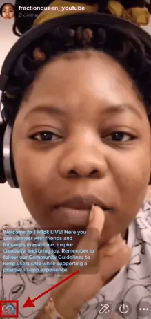 3…2…1 카운트다운 직후에 라이브 방송을 시작합니다. TikTok 커뮤니티의 다른 사람들을 공동 방송 에 초대하려면 화면 왼쪽 하단 모서리에 있는 두 개의 반원 모양 아이콘 을 탭하기만 하면 됩니다.