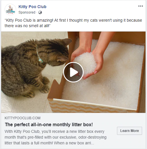채드: 네. This is actually text on screen and of course we have the background images of video that's happening of the cat walking into the box and then we say, “No odor, less cleaning,” that type of stuff that's popping up on the screen but you want to keep that emotional appeal going while you're educating your audience and you really need to do that in no more than 30 seconds and some Facebook experts will even tell you as little as 15.