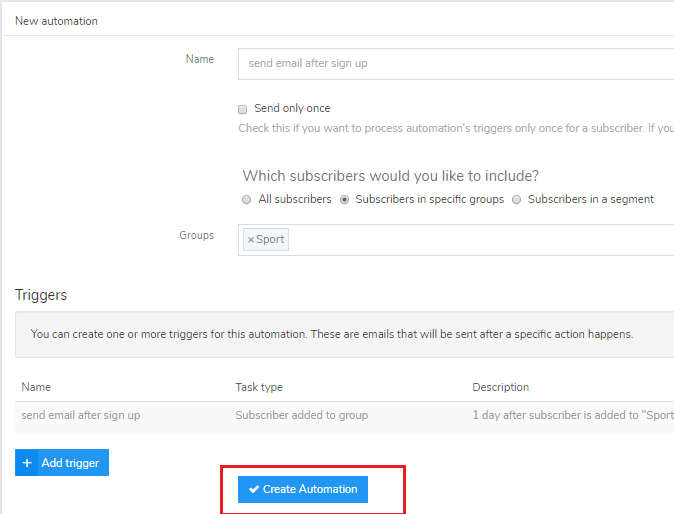 구독을 확인한 후 이메일 주소가 그룹에 추가되어 자동화가 시작됩니다. 즉, 시스템이 이전 단계에서 구성한 자동화를 보냅니다.