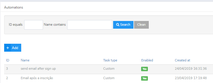가장 먼저 할 일은 자동화를 클릭하는 것입니다. 이 메뉴에서 " 추가" 버튼을 클릭합니다.