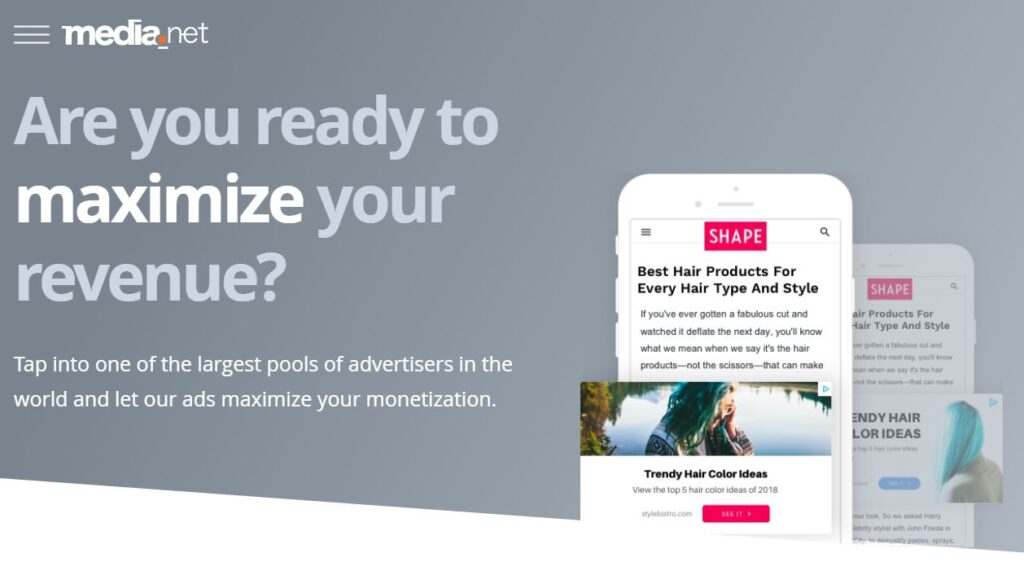 Media.net은 Google 애드센스 다음으로 세계에서 두 번째 문맥 광고 네트워크 입니다. 즉, 프리미엄 게시자로부터 엄청난 양의 트래픽을 얻을 수 있습니다.