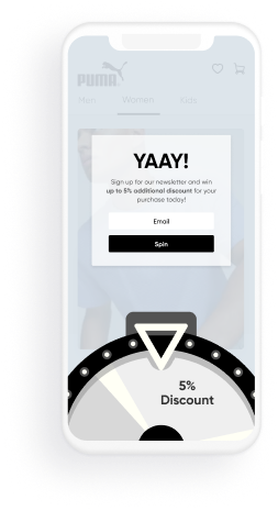 웹사이트에 휠 돌리기 오버레이를 추가하여 사용자가 세부 정보를 입력하고 게임을 플레이하면 할인 쿠폰을 받을 수 있는 대화형 경험을 제공하는 것이 좋습니다.