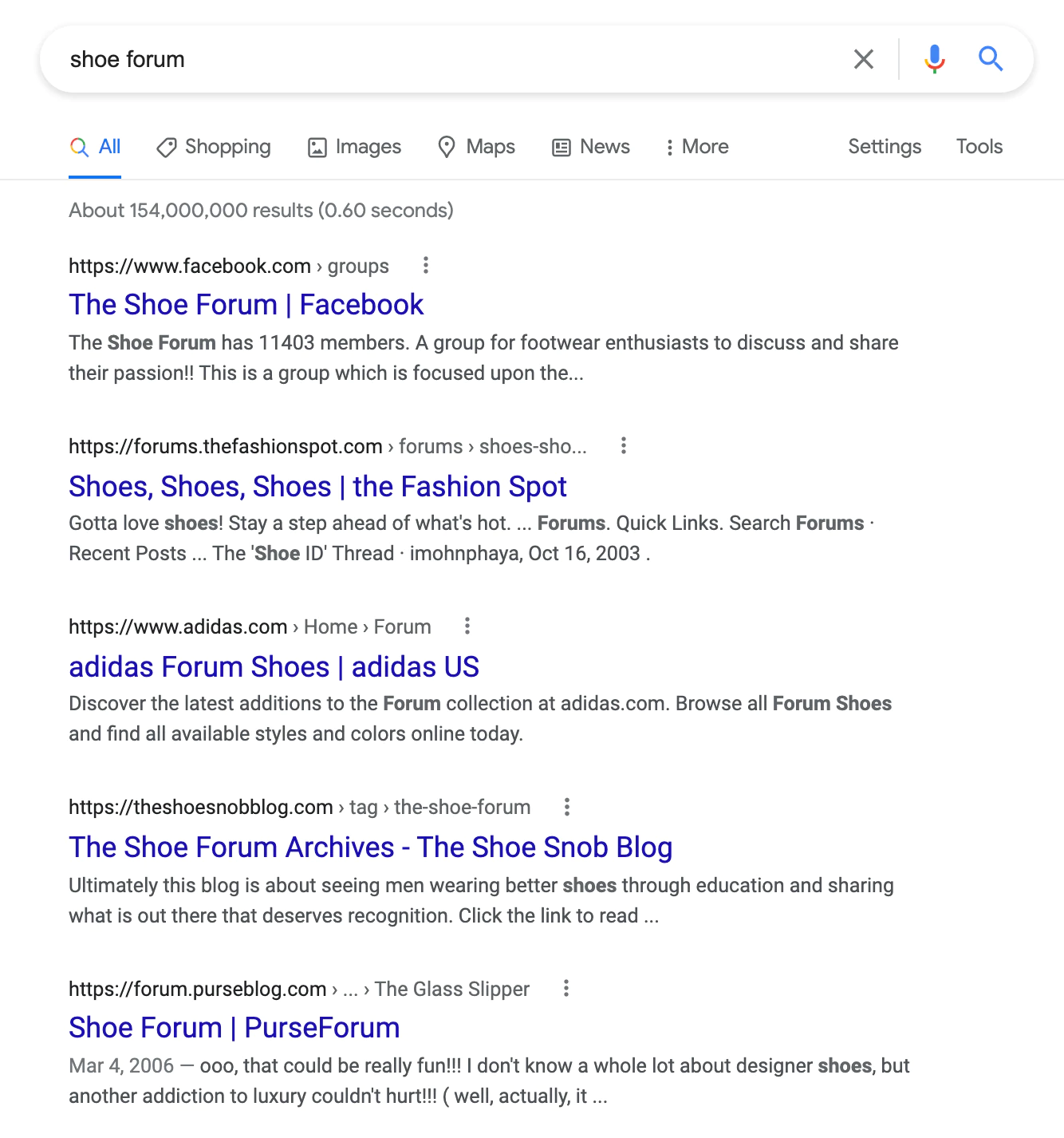 그리고 여전히 틈새 시장에서 포럼을 찾지 못하면 Google을 검색해 보십시오. 검색 창에 틈새 시장 + 포럼을 입력하고 어떤 결과가 나타나는지 확인하십시오.