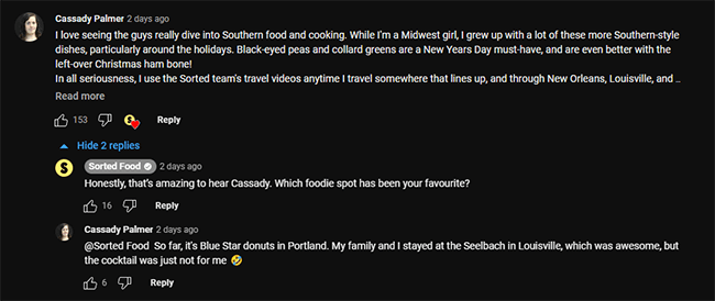 댓글 섹션에서 YouTube 동영상과 상호 작용하는 것을 본다면 더 많은 사람들이 YouTube 동영상을 볼 것입니다. 긴 대답을 할 필요가 없습니다. 간단한 감사 인사라도 시청자의 생각에 관심이 있다는 것을 보여줄 수 있습니다.