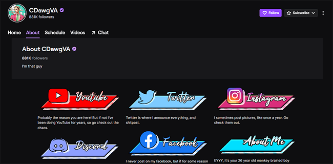 해당 플랫폼을 사용하여 청중이 YouTube를 포함한 다른 소셜 채널에서 팔로우하도록 하는 Twitch 스트리머가 있습니다.
