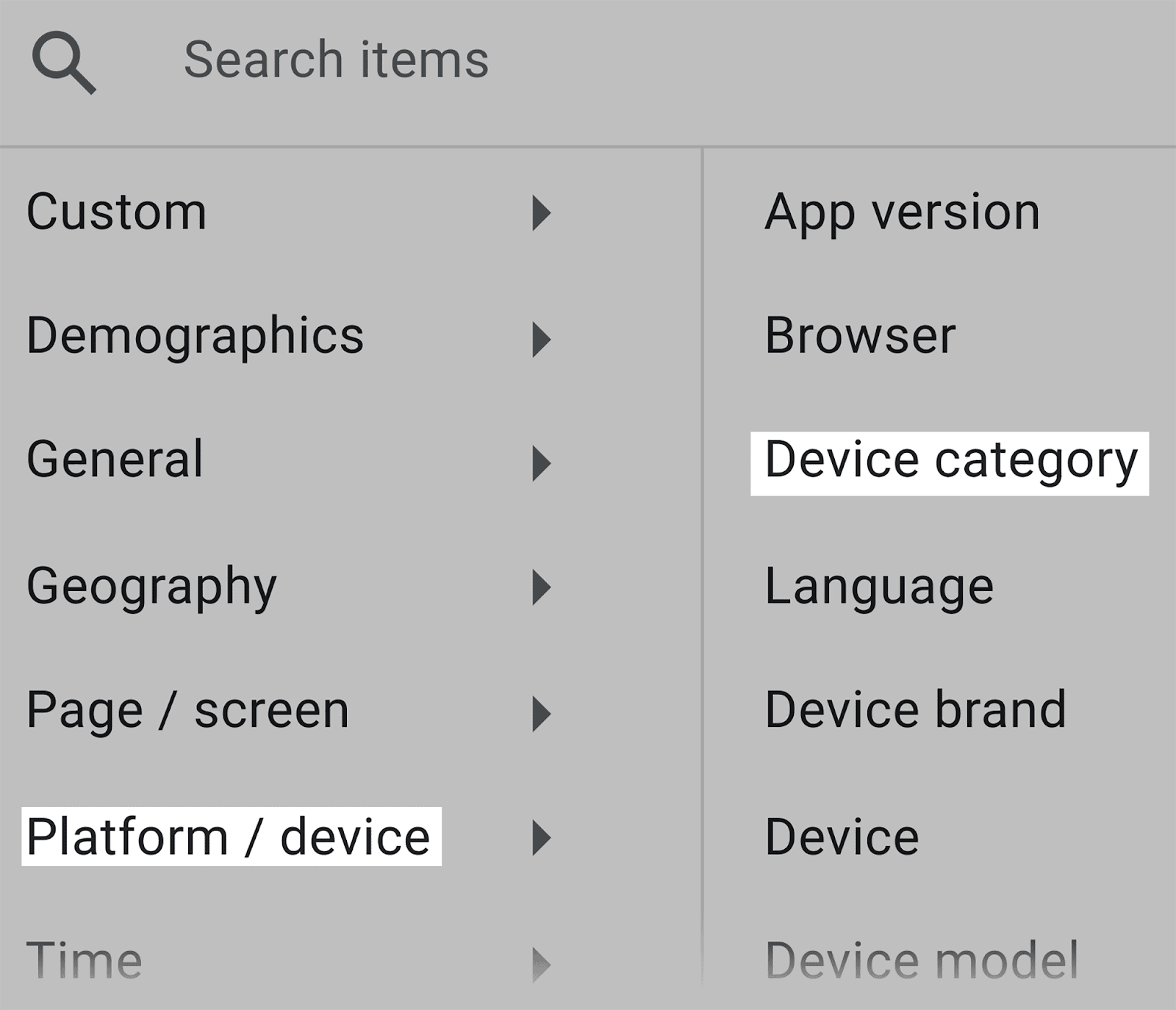 그런 다음 왼쪽에서 “플랫폼/장치”를 클릭하고 오른쪽에서 “장치 카테고리”를 클릭합니다.