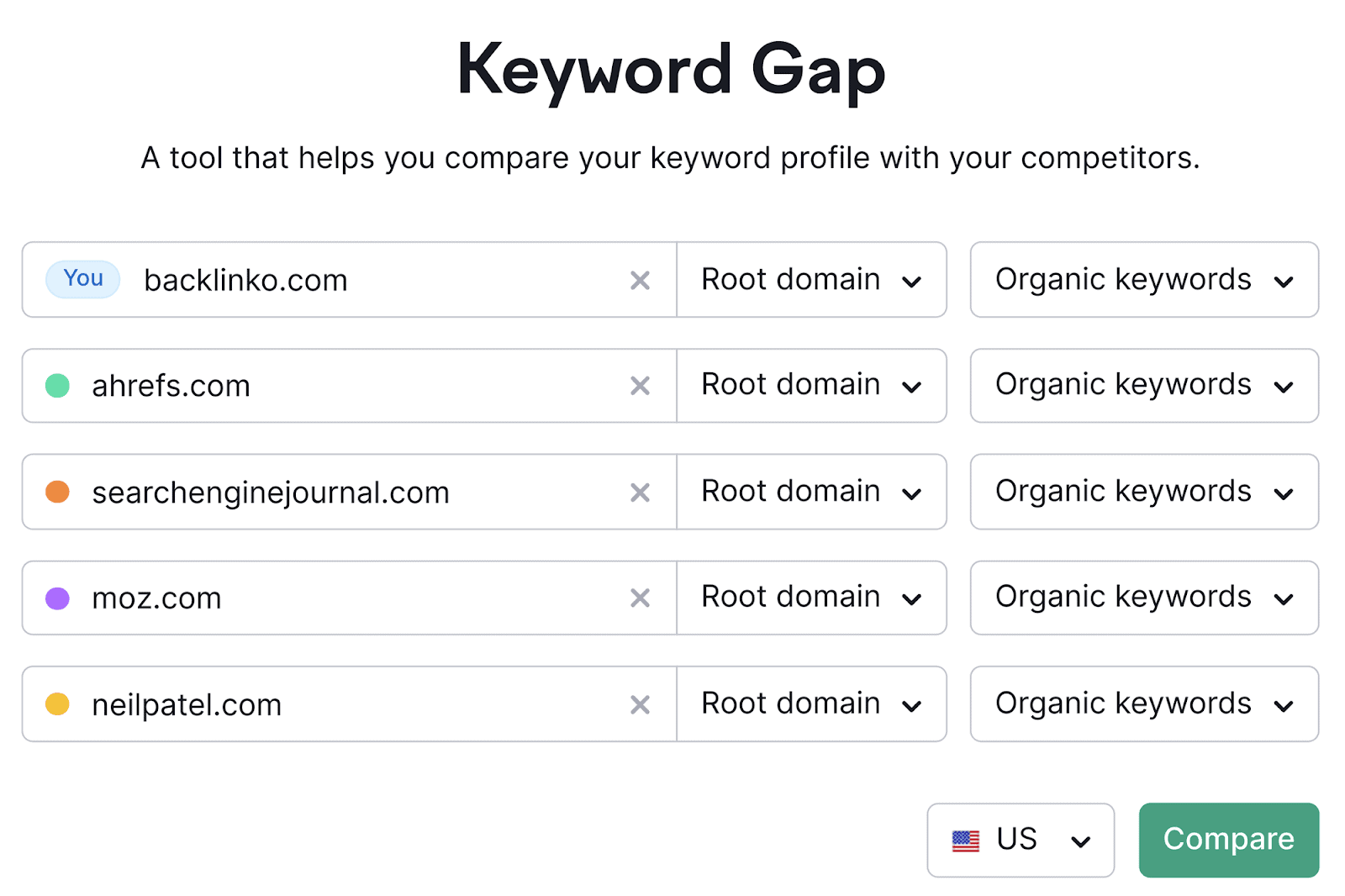 또한 Backlink Gap 도구를 사용하면 여러 경쟁업체를 동시에 분석할 수 있습니다.