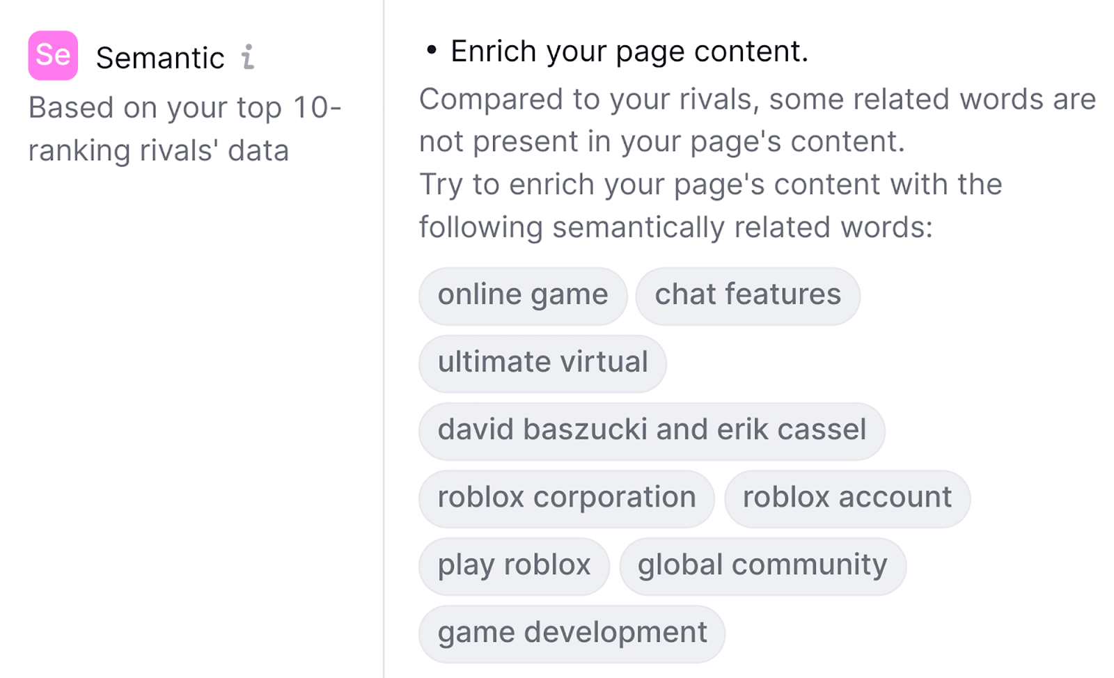 이 기사에 나열된 Semrush 툴킷도 마찬가지입니다. 자동으로 키워드를 추적하고, 경쟁업체를 검토하고, 사이트를 감사할 수는 있지만 발견한 문제에 대한 솔루션을 구현할 수는 없습니다.