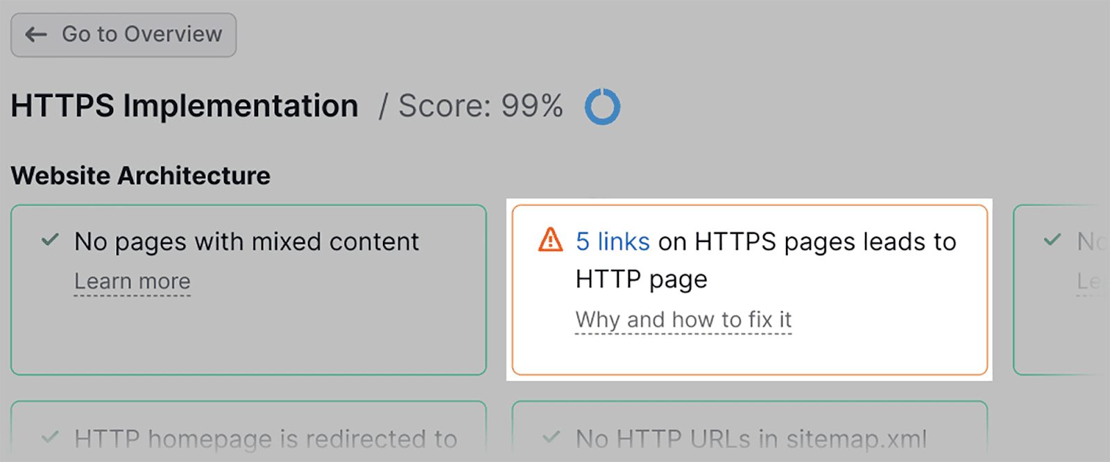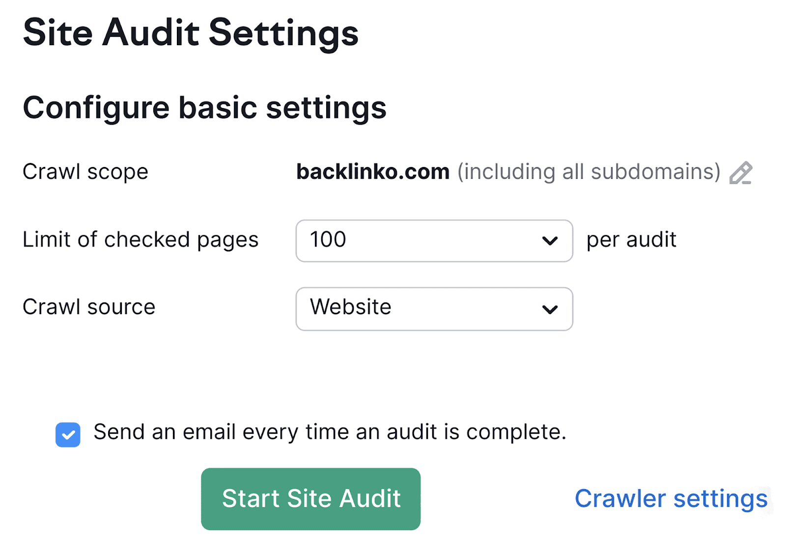 예를 들어 Semrush의 사이트 감사 도구를 사용하여 사이트를 크롤링하고 깨진 내부 링크를 찾을 수 있습니다.
