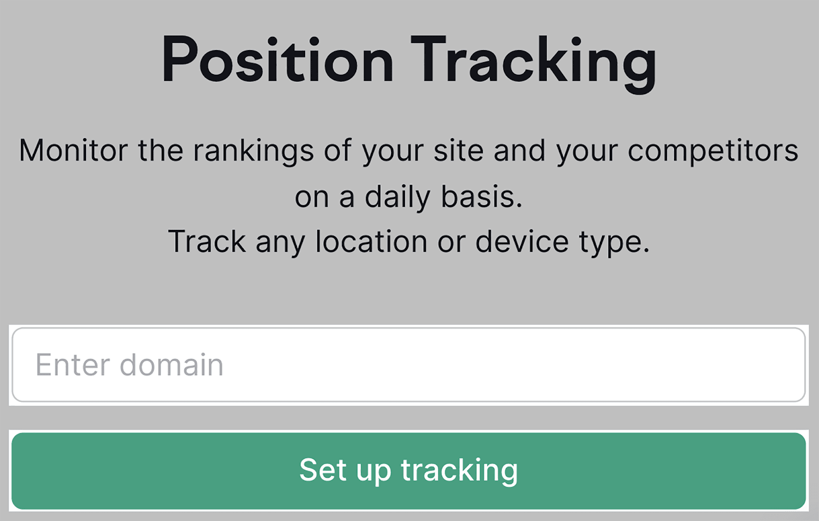 예를 들어 “Organic Search Positions”를 클릭하면 창이 팝업됩니다. 이 창에서는 도메인 이름을 입력하고 데이터베이스를 선택해야 합니다.