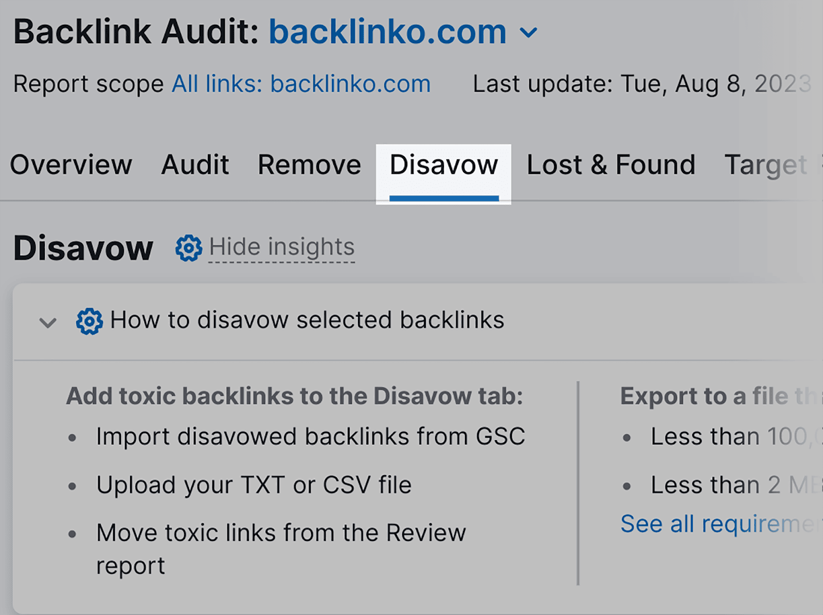 거부 목록을 통해 유해한 링크를 처리한 후 백링크 프로필의 변경 사항을 모니터링할 수 있는 방법을 살펴보겠습니다.