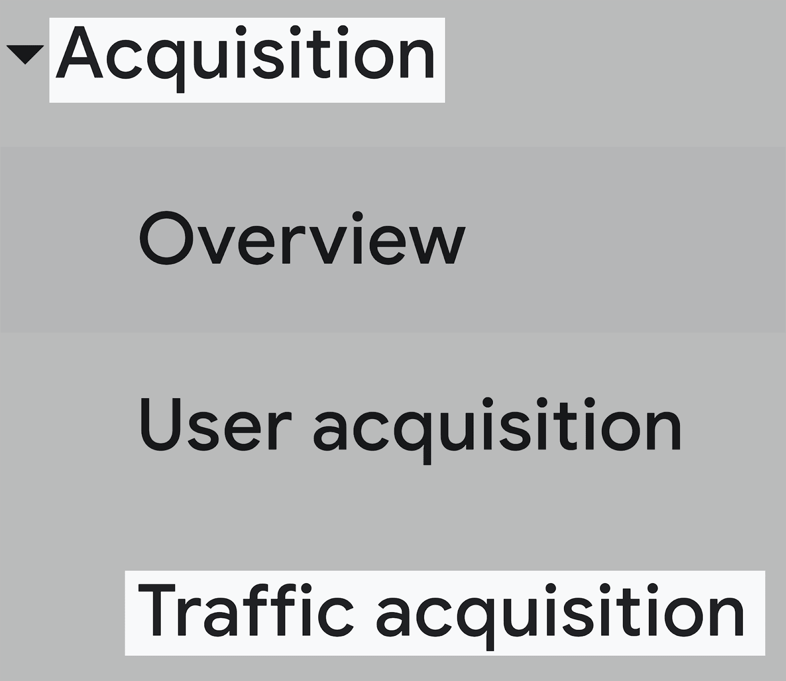 그런 다음 왼쪽 메뉴의 Acquisition(획득) 섹션에 있는 “Traffic Acquisition(트래픽 획득)”을 클릭하세요.