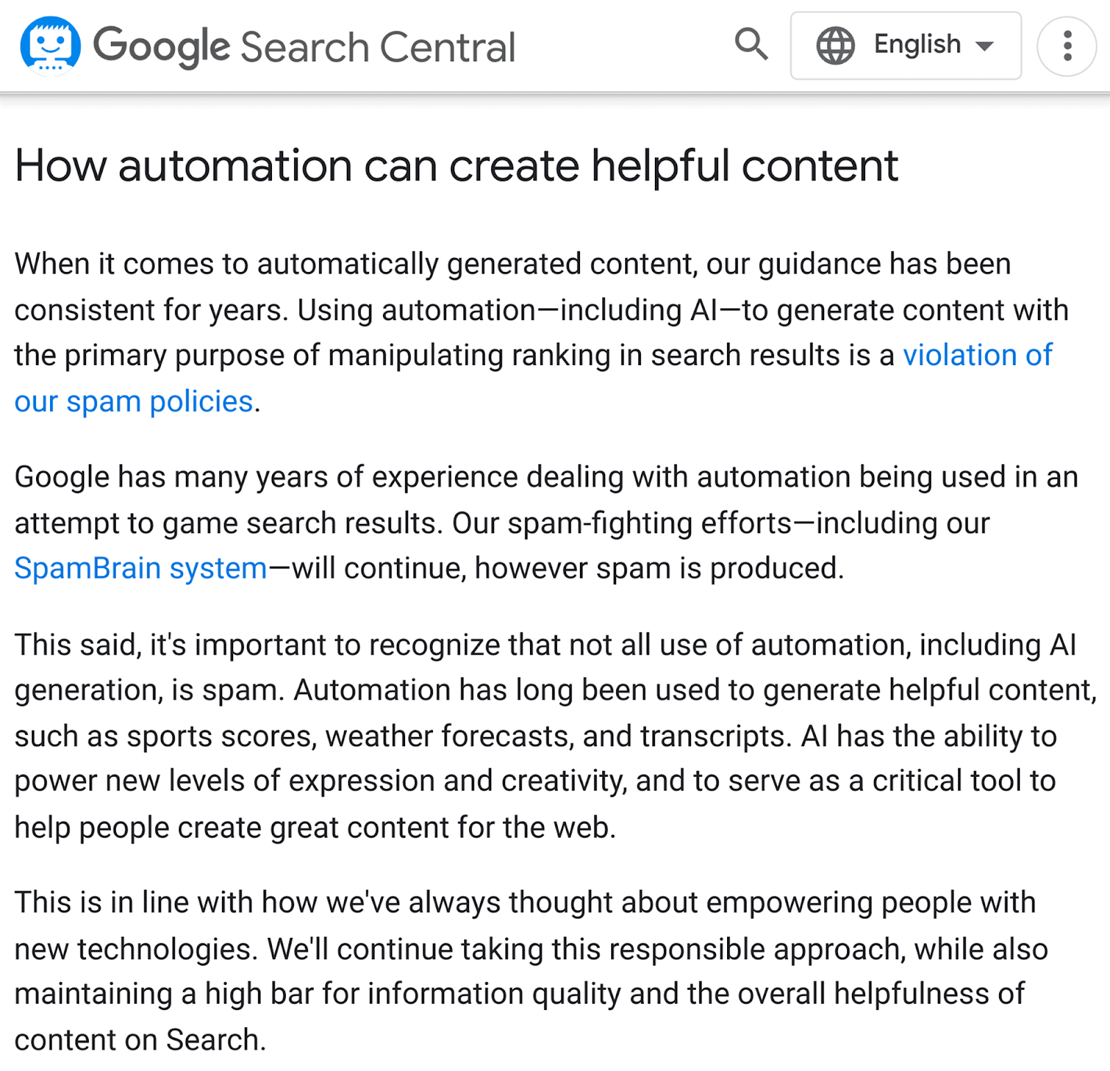 앞서 말했듯이 AI는 인간의 전적인 입력이 있는 SEO 도구로만 작동할 수 있습니다. AI 콘텐츠 생성기 도구는 콘텐츠 아이디어를 제공할 수 있지만(심지어 콘텐츠를 작성해 주기도 함) 인간이 이를 검증하고, 편집하고, 확장해야 합니다.