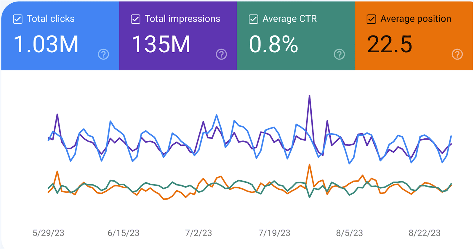 도메인을 플랫폼에 연결하면 GSC를 사용하여 페이지의 주요 측정항목을 분석할 수 있습니다. 이러한 측정항목에는 다음이 포함됩니다.