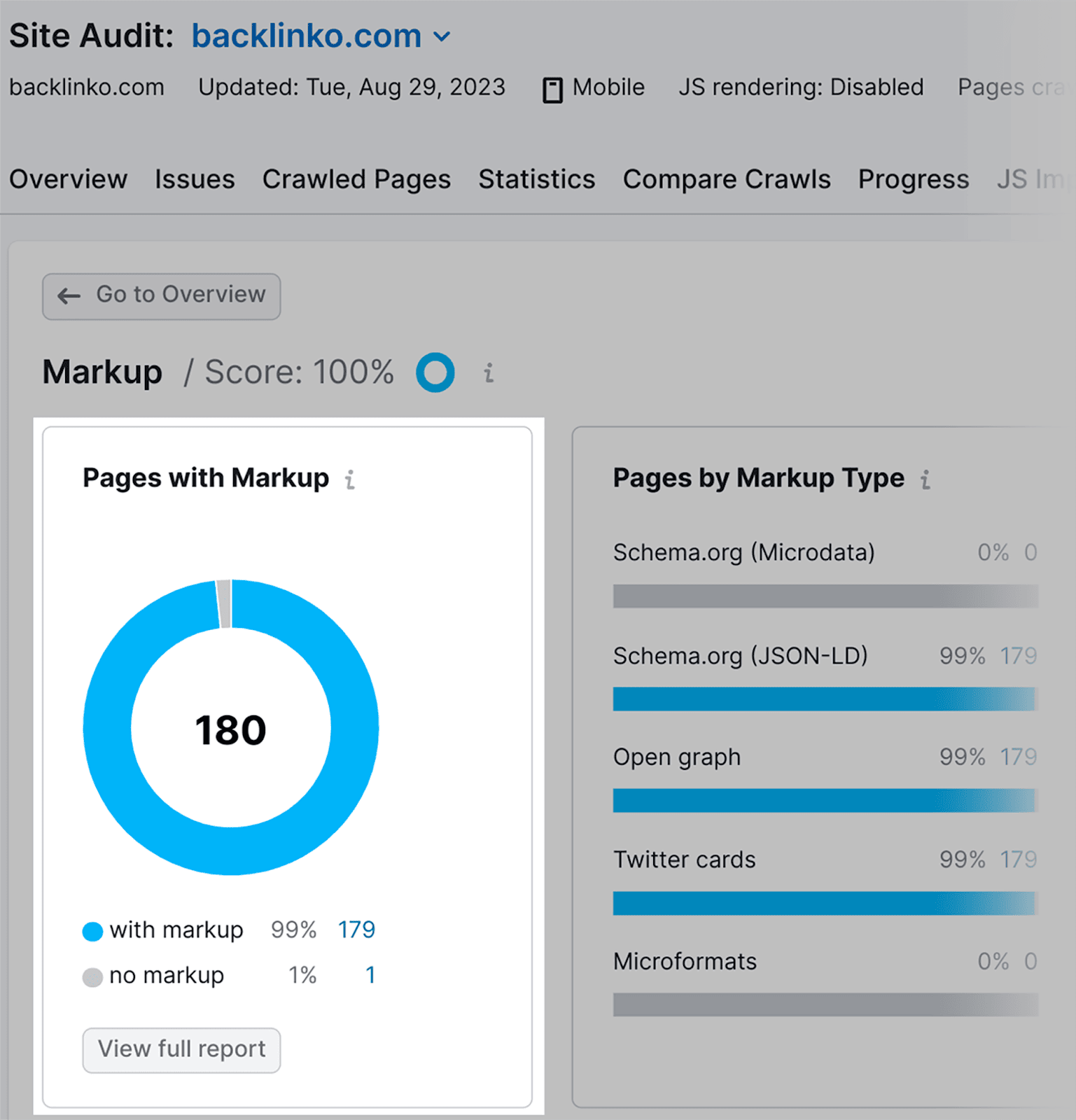 보시다시피 보고서는 Semrush를 통해 얻은 것만큼 포괄적이지 않습니다.