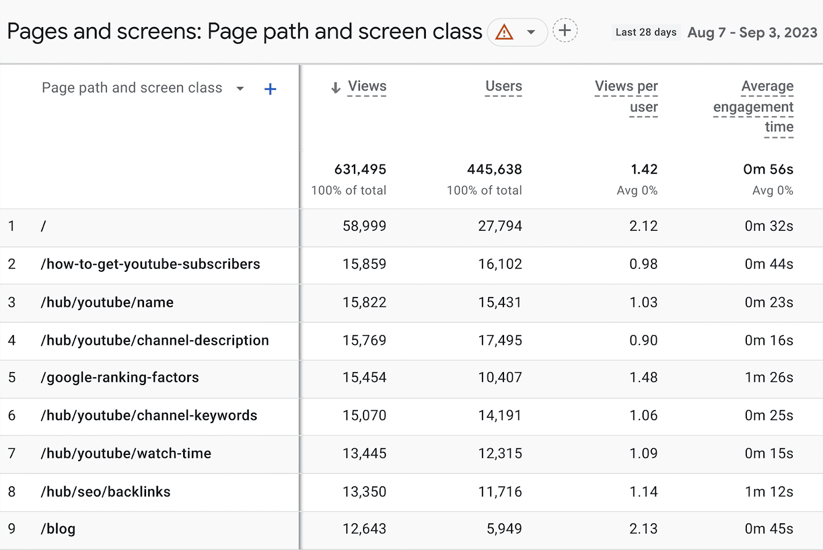 SERP 위치를 확인하는 것은 좋은 성과 지표로 작동하지만 페이지 조회수 지표를 검토하면 청중이 페이지에 어떻게 참여하는지 더 잘 이해할 수 있습니다.