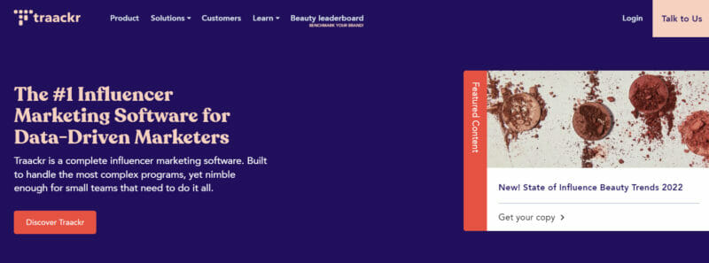 글로벌 인플루언서 마케팅 소프트웨어인 Traackr는 인플루언서 마케팅을 위한 유일한 기록 시스템입니다. 600만 개가 넘는 인플루언서 프로필과 인플루언서 검색, 콘텐츠 추적 및 보고를 위한 최대 데이터 세트를 보유하고 있습니다. Traackr는 인플루언서 마케팅 프로그램을 전체적으로 볼 수 있도록 도와줍니다. 또한 벤치마킹에서 투자 최적화에 이르기까지 모든 수준에서 전략을 세울 수 있습니다.
