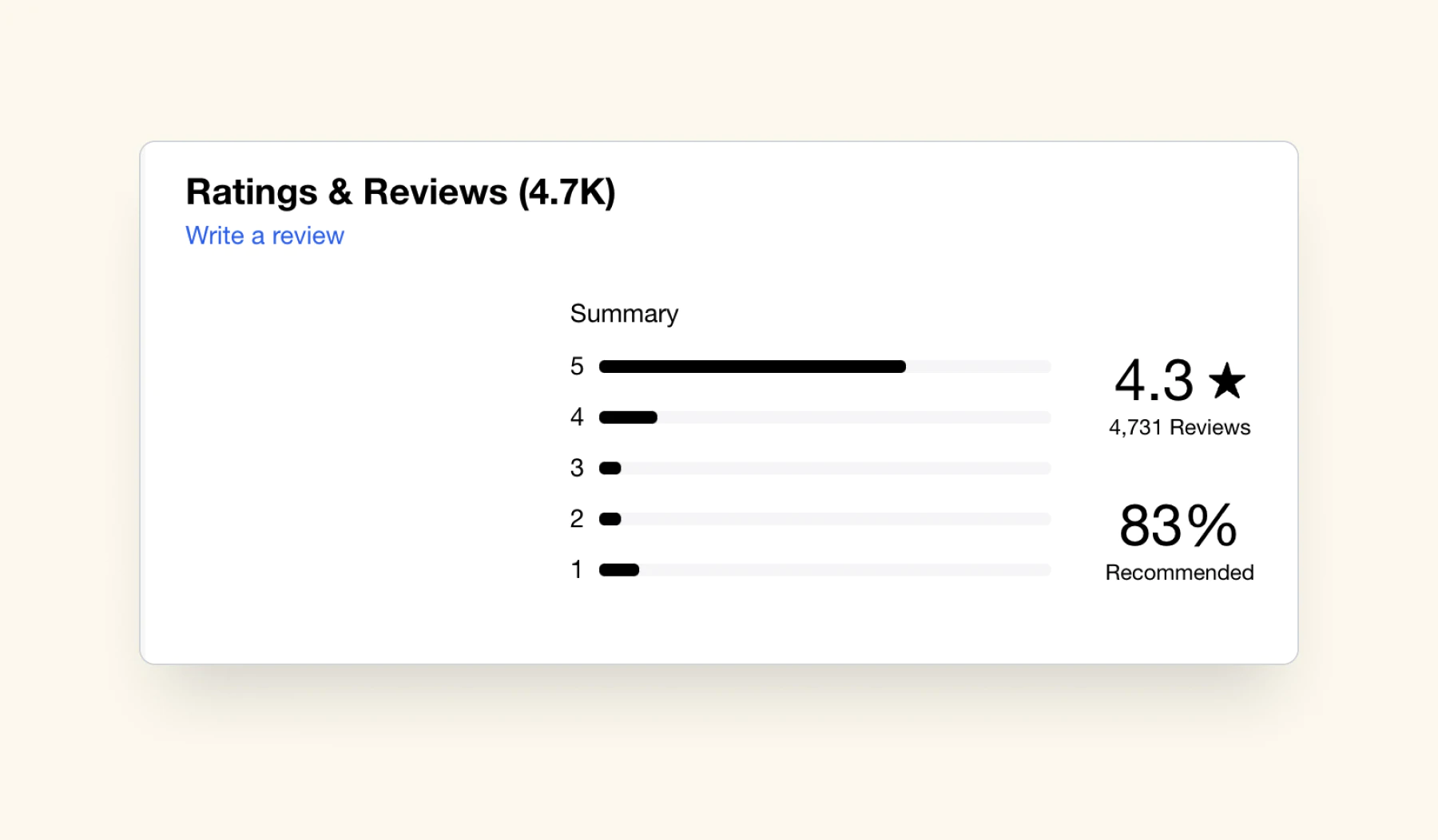 이런 종류의 피드백을 받는 쉬운 방법은 고객이 리뷰를 남길 수 있도록 하는 것입니다. 이는 구매자가 구매를 하도록 설득하는 데 도움이 되는 것으로 입증되었습니다.
